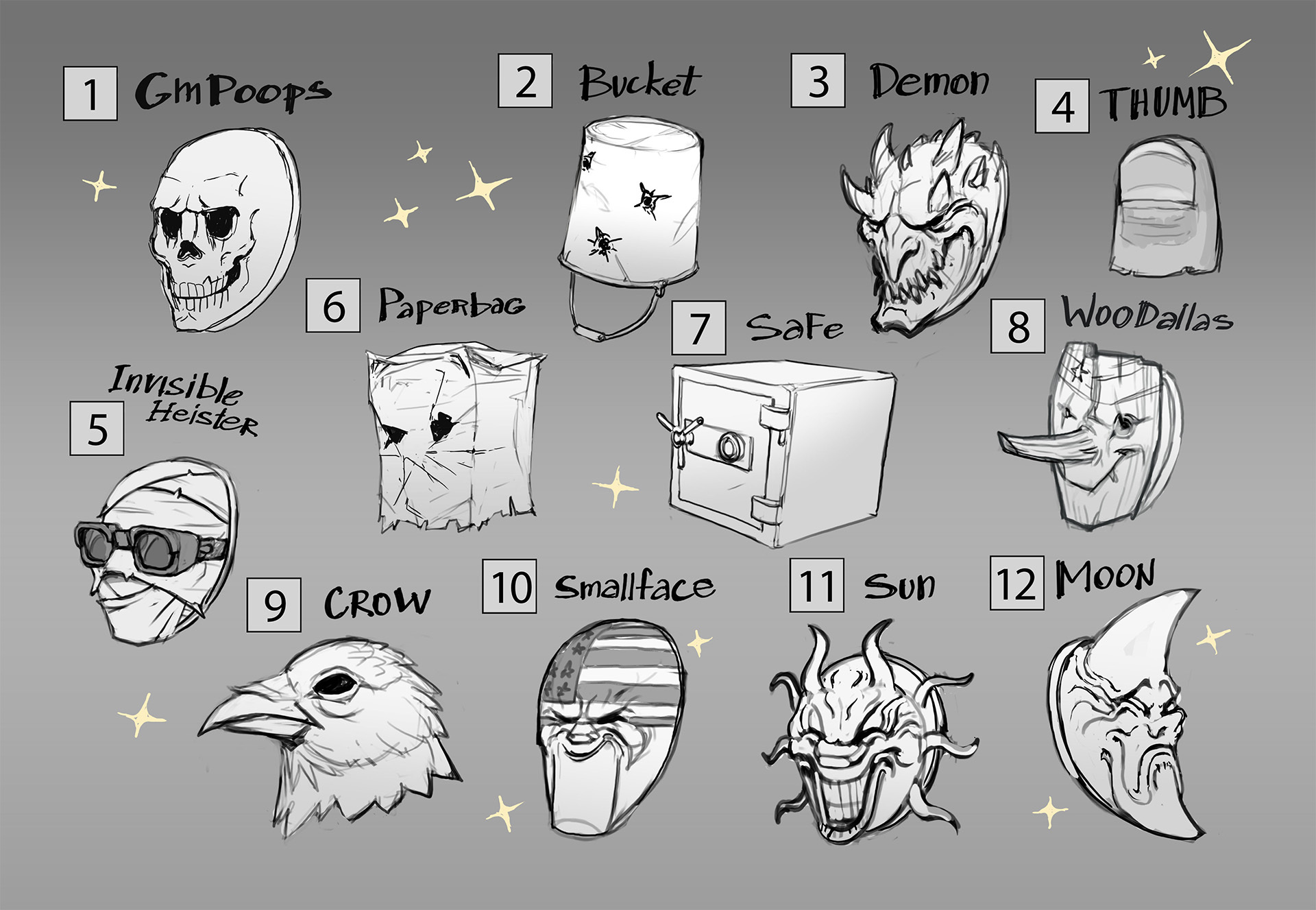 Our concept artists have been hard at work coming up with new ideas for masks in PAYDAY 3, and we want YOU to help us pick your favorite idea. The winning mask idea will be designed, shaped and molded into a usable mask for all PAYDAY 3 Players.