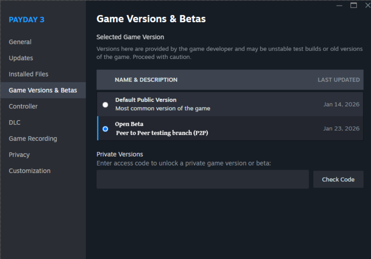 The playtest will be running on a separate branch on Steam. To switch branch, you need to right click on PAYDAY 3 in your Steam Library and select "Properties".